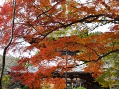 根來寺の紅葉ですが、落葉が進んできましたが木によって、写真のように見頃の木もあります。