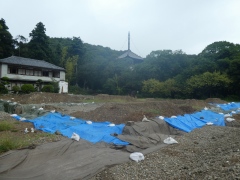現在、新本坊東側に擁壁を建てる為、追加の発掘調査を行っています。