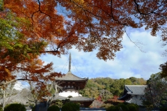 根來寺境内では、光明殿前の紅葉が見頃になっています。