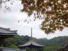 根來寺の紅葉ですが、落葉が進んできましたが木によって、写真のように見頃の木もあります。