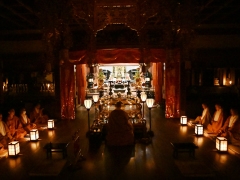 陀羅尼会は興教大師覚鑁上人が亡くなられた前日(12月11日)の逮夜(明日におよぶ夜、前夜)に教学研鑽の成果を問答形式で明らかにする論議という儀式で、夜を徹してお経(尊勝陀羅尼)を読誦することから陀羅尼会と呼ばれています。