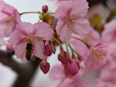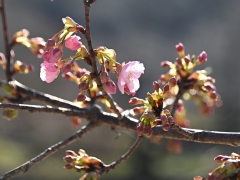 根來寺境内では、河津桜が咲き始めました。